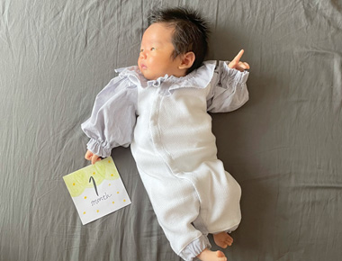 真っ白なフリフリドレスと違い、簡単なお祝いでも使えるので毎月着せて成長を確認できてます!