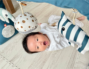 北欧雑貨が好きなので、うちのインテリアにぴったりでした。通常のプレイマットはおうちの真ん中で場所を取ってしまうのですが、このジムは使わない時は隅に置いておけるのでお部屋がすっきり!
