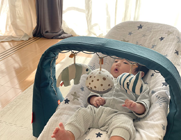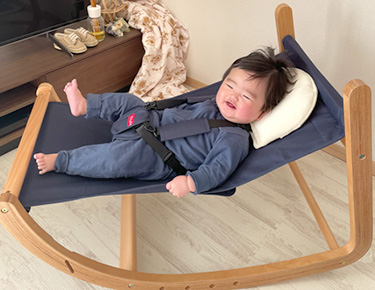 ベルト付きなので、離乳食中に前のめりに倒れていくことがありません。私が家事やお化粧の間はここに座って見守っていてくれるので親子の距離が近くなりました!ふわふわで気持ちいいバウンサー用の枕は、今はお昼寝の時に活躍しています。
