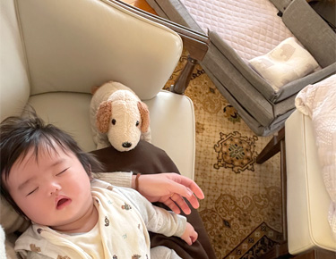 息子もいつも慣れているにおいで寝られるからなのか、慣れない場所でもぐずりません!