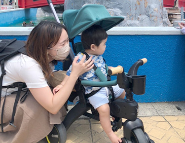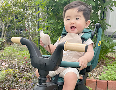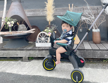 AB兼用のベビーカーは背もたれがあまり立たず、お座りができるようになった息子には物足りなさそうでしたが、リキトライクはお座りとたっちの中間のような形で乗れるため、とても楽しそうに乗ってくれています!