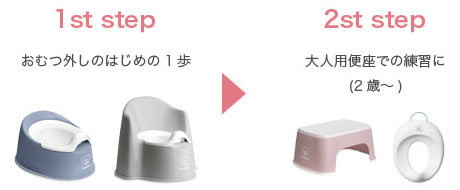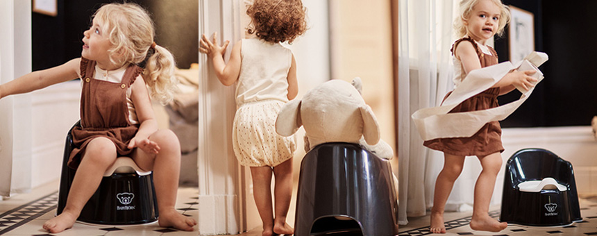 ベビービョルンのトイレアイテムは、トレーニング時期に合わせて形をお選びいただけます。