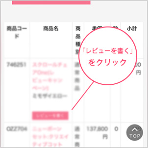 「詳細」を選択して、購入商品の「レビューを書く」をクリック。