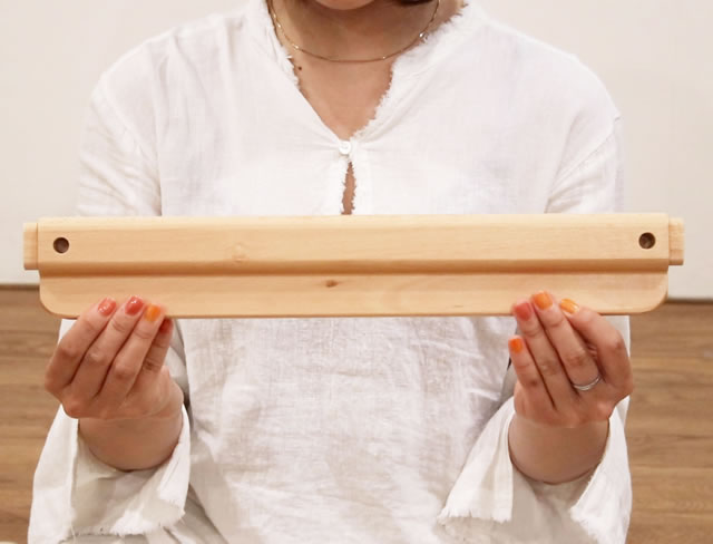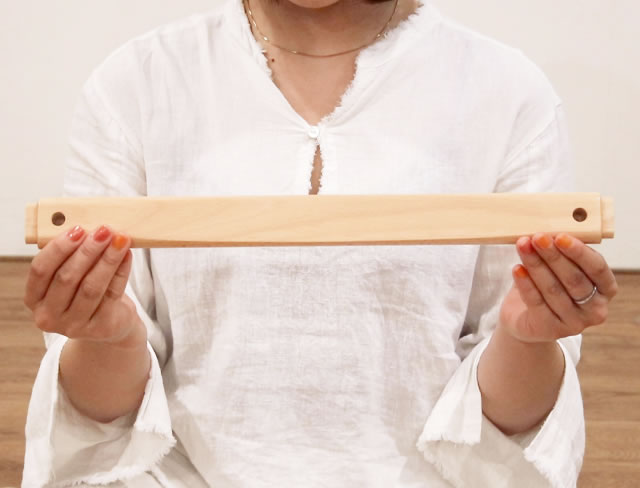(2).両端にある穴に差し込みます。通す際、バーは上下左右気にしなくて大丈夫です。