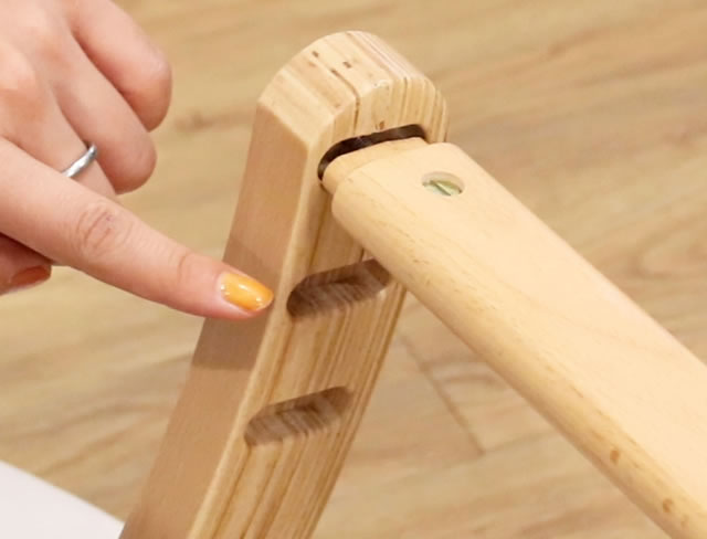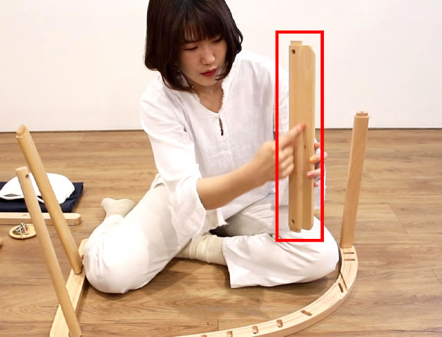 (10).次にフットレストを取り付けます。このバーはロッキングチェアのストッパーになるので、向きに注意です。