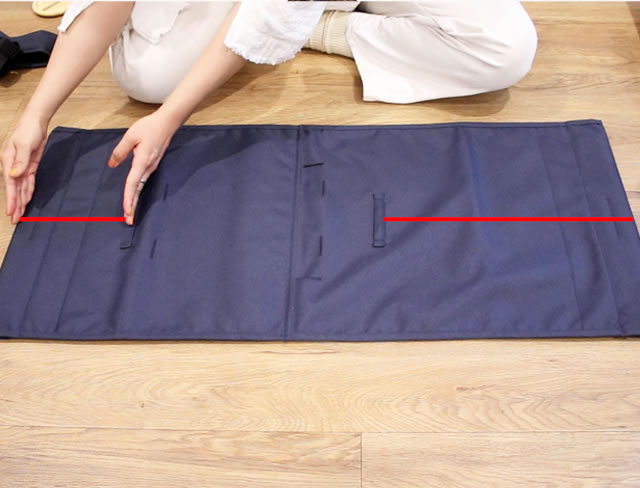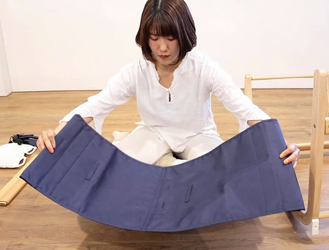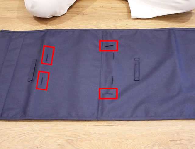 (5).次に、シートの足側を取り付けます。布が上から垂れるように、パタンと1回巻いてください。