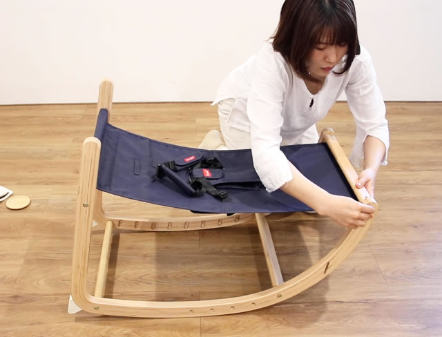 ファルスカのスクロールチェアPlusは、新生児期にはロッキングチェアとしてお使いいただけます。スクロールチェアPlusのロッキングチェア組立て方法をご紹介します。
