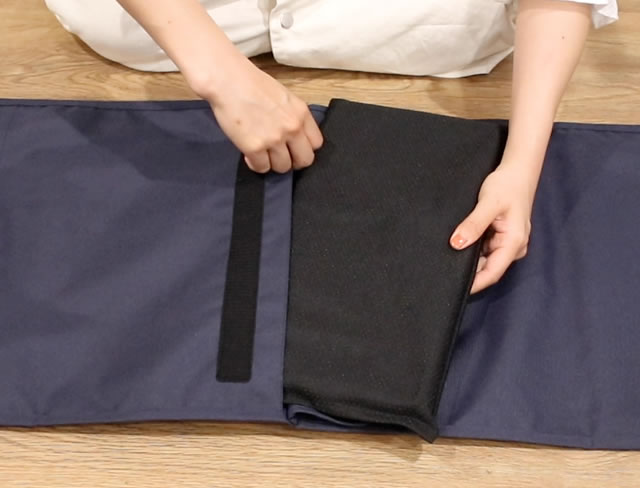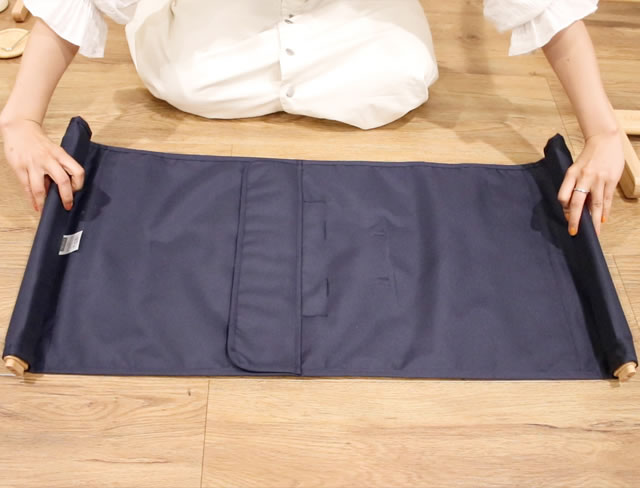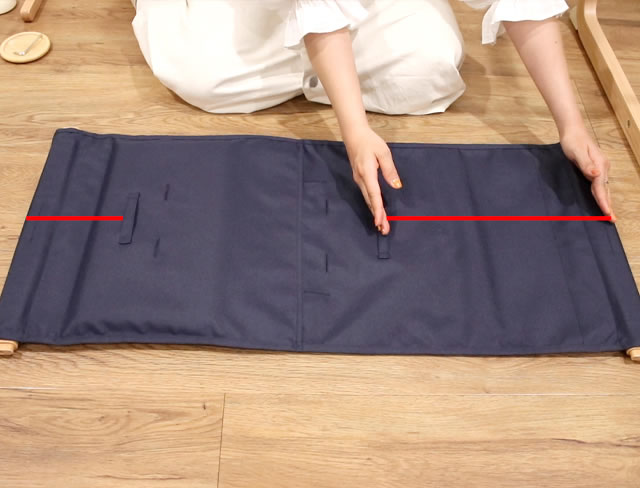 (3).座面側のシートを1回巻きます。布が上から垂れるように、パタンと1回巻いてください。