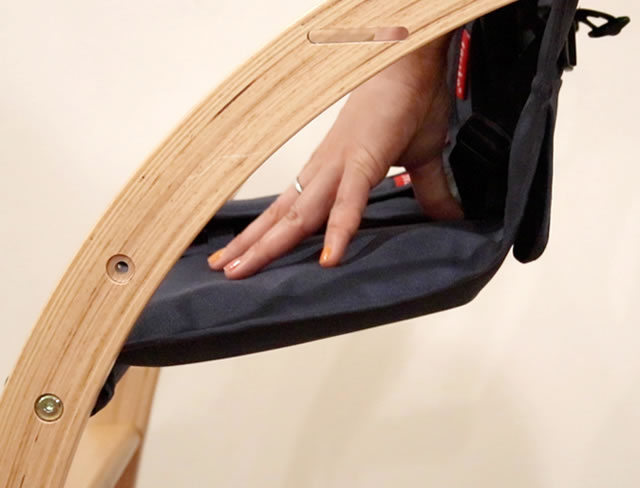 (3).次にシートを整えます。整える前は座面が斜めになっているので、しっかり上から押して、座面を水平にしてください。