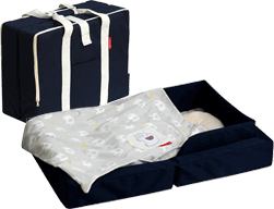 ファルスカのコンパクトベッドは、折りたたみ式の持ち運べるベビーベッドです。