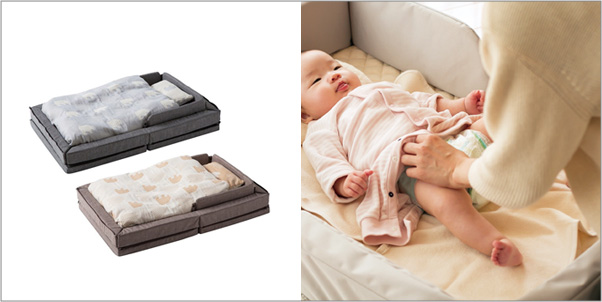 おむつ替えの際や授乳後に、お尻や背中に敷いておくことでマットレスや床面の汚れを防いでくれる「3Way防水シート」をプレゼントいたします。外出の際も折りたたんで持ち運べるポータブルサイズ。何枚あっても嬉しいアイテムです。