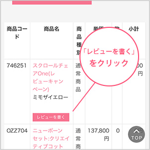 「詳細」を選択して、購入商品の「レビューを書く」をクリック。