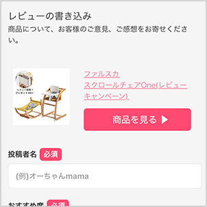 - O-BABY.net(www.o-baby.net)でのご購入者様が対象となります。レビュー規約を確認した上でご投稿ください。