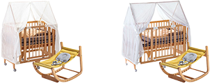 | セット内容数 | 8または9点 (寝具+チェア+アクセサリー) ベビーベッド、布団、マットレス、ベビーチェア、アクセサリー類 |