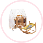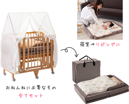 新生児期のおねんねを支え、形を変えながら永く使い続けられるクリエイティブコットを中心とした特別セットです。