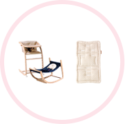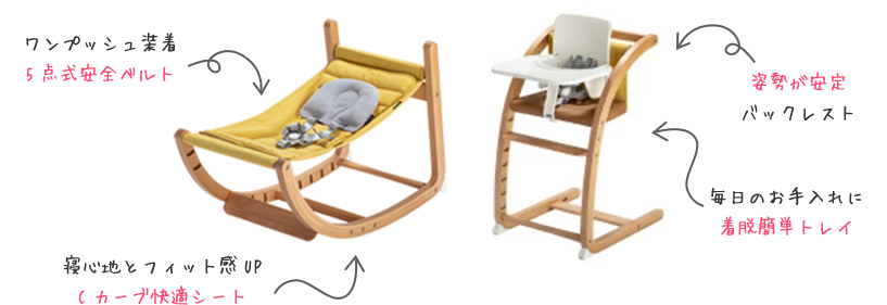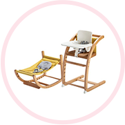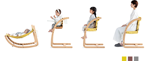「スクロールチェア」は、生まれたばかりの赤ちゃんから大人まで、成長に合わせて使える特別なゆりかごチェアです。