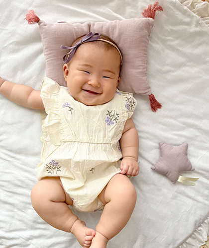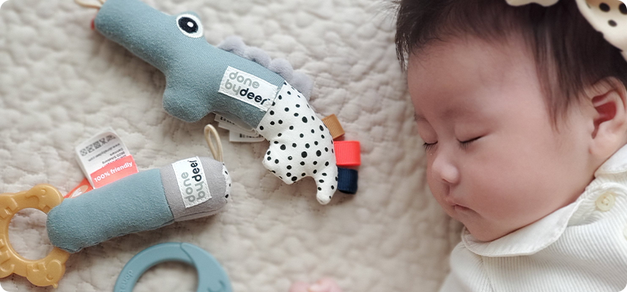 お昼寝でも大活躍してるよ♡音がする方を見て嬉しそうに笑うのかわいい〜