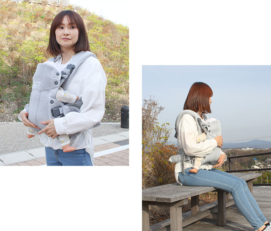 バックル式の抱っこ紐はアウターを脱がずに乗せ降ろしできるので、ぐすってしまった時にも素早く対応できます。