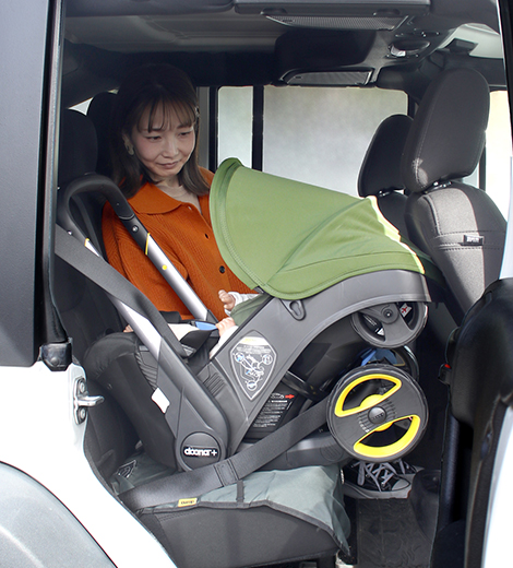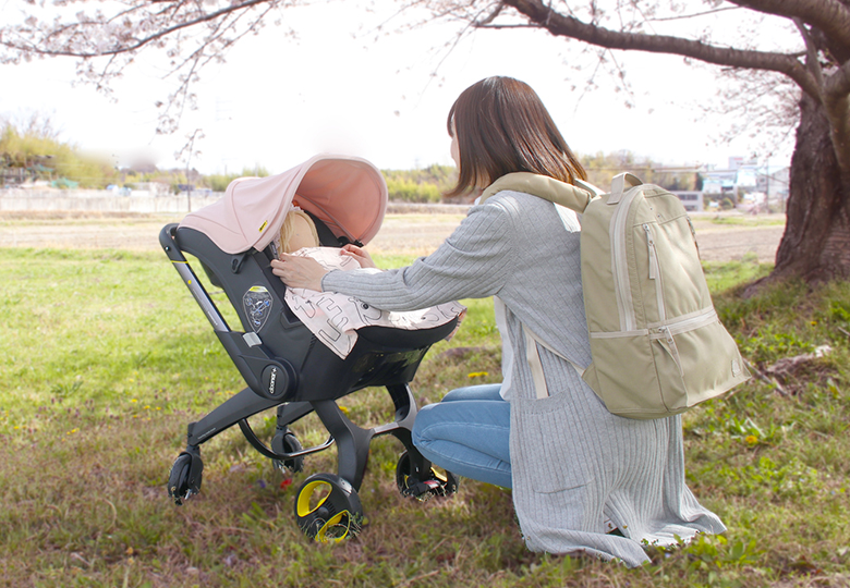 ベビーカーとチャイルドシートが一体の「doona」なら、どこでも赤ちゃんの快適なおねんねを叶えます。