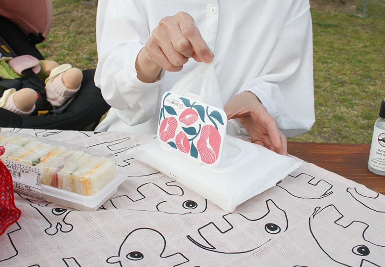 日が陰って少し肌寒い時のブランケット、お弁当を広げる時のランチョンマットなど、おでかけ先ではマルチに使えるアイテムは重宝します。