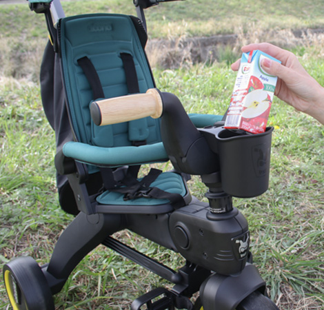 ワンタッチでバウンサーに変形するベビーカー「doona」なら、おさんぽ中にすやすや眠った赤ちゃんを起こすことなく、リビングまで帰れます。首座り前でも安心なヘッドサポート付き。