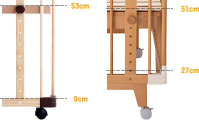 ベビーベッドのサイズによって中に入れるお布団のサイズも変わるので、購入の際は要チェック!床板の高さ