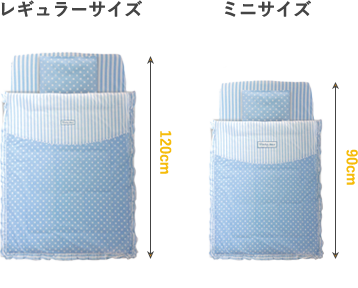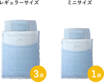 レギュラーサイズのベビー布団は3歳ごろまで、ミニサイズのベビー布団は1歳ごろまでご利用いただけます。