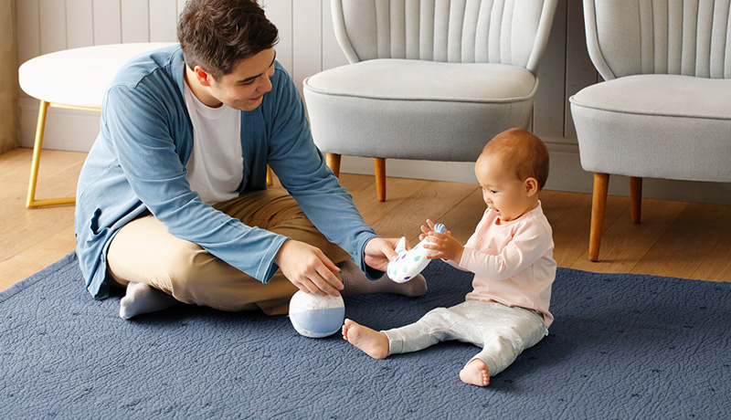 おうちの中で過ごす時は、赤ちゃんと触れ合うコミュニケーション時間を作って遊んであげましょう。手足遊びやいないいないばあ、お子さまやママパパの好きなお歌を歌ってコミュニケーションを深める時間にしてあげると、雨の鬱憤としたテンションも忘れさせてくれます。