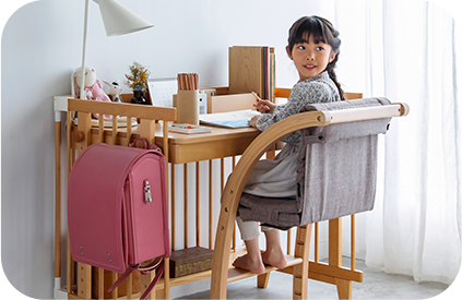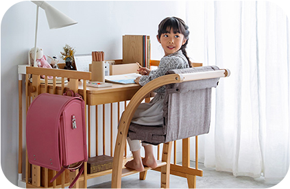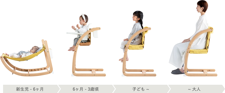 お子さまの成長に合わせて「ゆりかご」から「チェア」へと形を変えることで、子どもとの暮らしに永く寄り添います。