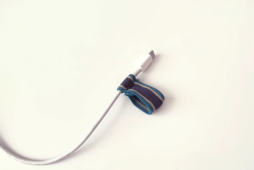 この画期的なゴムループのアイディアを何かに生かせないか?と思った時にすぐに目に止まったのが机の上にぐちゃぐちゃっと置いてあったパソコンの充電ケーブルです。
